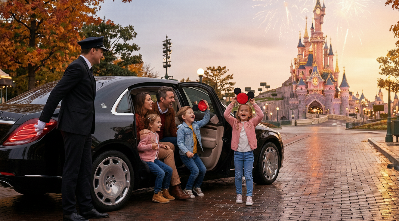 Chauffeur professionnel local, ponctuel et expérimenté pour votre transfert vers Disneyland Paris confort, sécurité et tranquillité garantis pour toute la famille